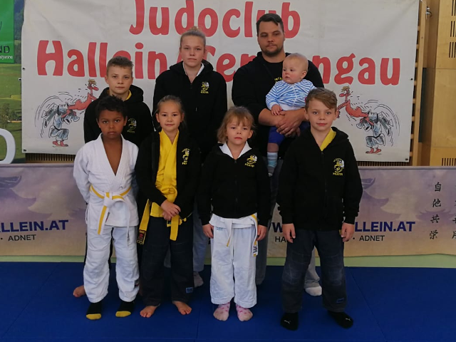 In der U10 startete dann Fabian Beinhölzl, welcher zur Abwaage 500 Gramm zuviel mitbrachte. Daher musste er in der Gewichtsklasse -34kg starten. Antreten musste er gegen einen altbekannten Gegner, einem Lokalmatador aus Hallein. Mit dem hatte er bisher immer so scheine Problemchen und entsprechend war Fabi auch angespannt. Letztes Jahr nach 10 Sekunden verloren, konnte er diesmal nach einer Kampfzeit von einer Minute die Partie mittels Ippon für sich entscheiden. Damit ging er nun losgelöst in die restlichen Kämpfe der 4er-Gruppe. Kampf zwei wurde mit zwei Waza ari ebenfalls auf der Soll-Seite verbucht. Der letzte Kampf kostete seinen Trainer und Papa Florian dann einige Nerven, da er bis eine Sekunde vor Schluss ohne Wertung verlief. Kurz vor dem Gong konnte Fabi aber nochmal alle Kräfte mobilisieren und seinen Gegner zu Fall bringen. Die Waza ari Wertung brachte ihm dann Platz 1 ein.