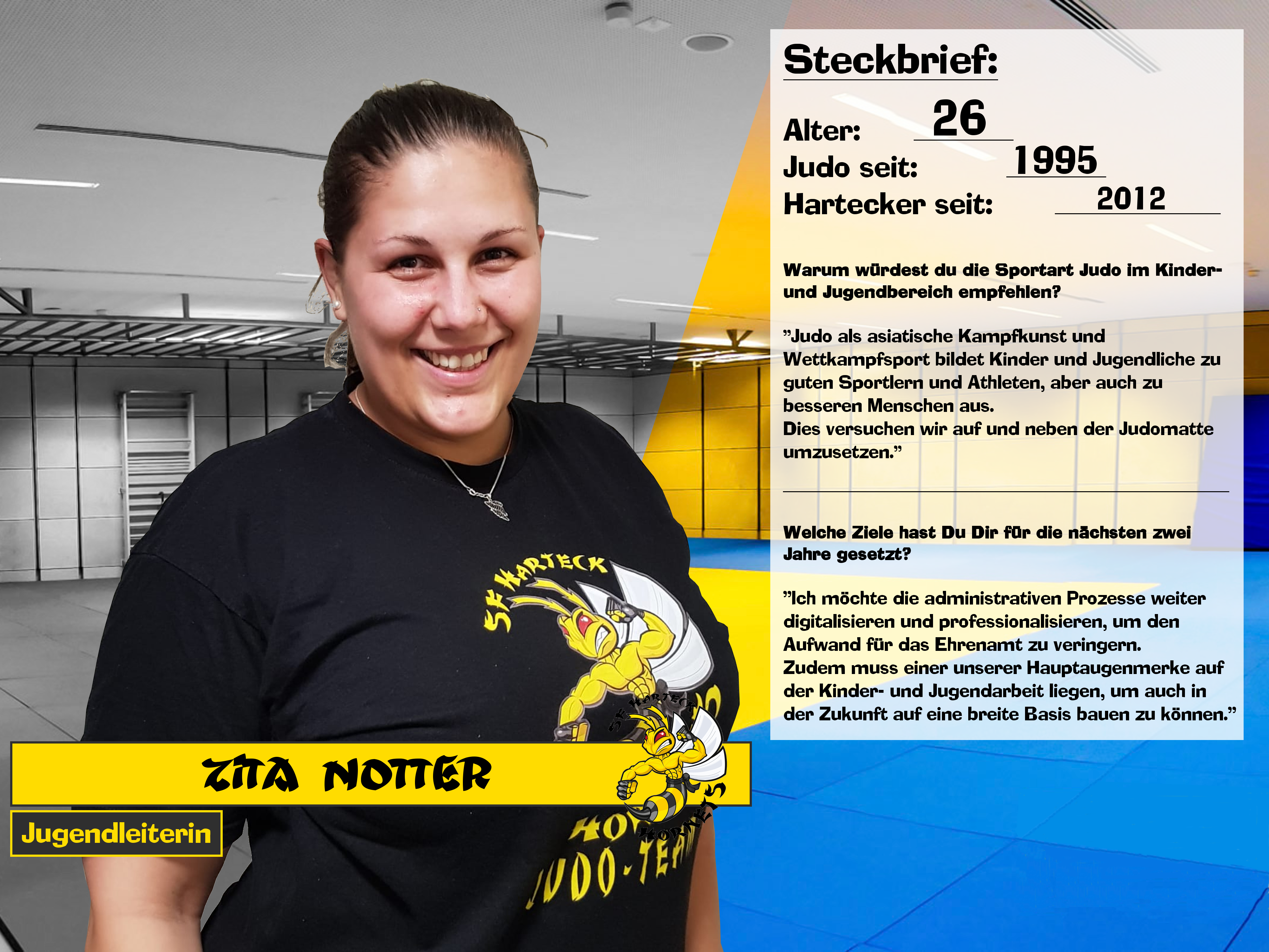 Mit Zita Notter haben wir eine ehem. Leistungssportlerin, die in der Jugend den Titel als Europameisterin unter deutscher Flagge erkämpfen konnte. Mehrere Deutsche Meisterschaften und auch das weiterhin aktive Kämpfen im Liga- und Einzelbereich und eine Trainer-A Lizenz nach DOSB-Richtlinien machen das Paket der Athletin, Trainerin und Jugendleiterin perfekt.