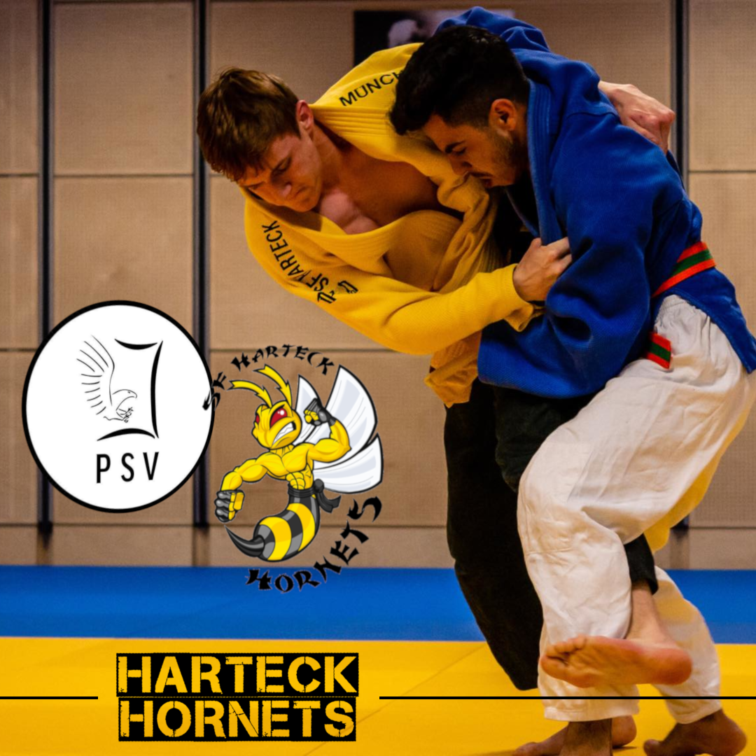 Dann war Christoph G. an der Reihe und bekam es mit Christian Bichler zu tun. Schon nach kurzer Zeit ein Shido (Strafe) wegen abgebeugten Kämpfen und der dominante Griff von Bichler brachten unseren Kämpfer in Bedrängnis und Bichler konnte ein Waza ari durch eine Selbstfalltechnik erzielen. Christoph versuchte dann Druck zu machen und sein Ansatz missglückte, sodass der Gegner nur vorne einsteigen musste und der Hartecker ihm direkt auf den Harai goshi (Hüftfeger) auflief. Beim nächsten Kampf von Stefan gegen einen Jungspund der Gäste ging innerhalb weniger Momente dann erneut das Licht aus. Ein Wurf mit Wertung für den Kämpfer des Post SV, gefolgt von einem Haltegriffversuch, gegen den sich der Hartecker gut erwehrte. Nach der Befreiung folgte der erneute Versuch des Festhalters gegen Stefan. Doch der clever und abgebrüht, hatte seine Hände schon am Hals des Gegners, rollte diesen Über und hatte Haltegriff und Würger in einem. Da waren bei Julian sehr schnell die Augen zu und damit Ippon auf der Hartecker Seite.