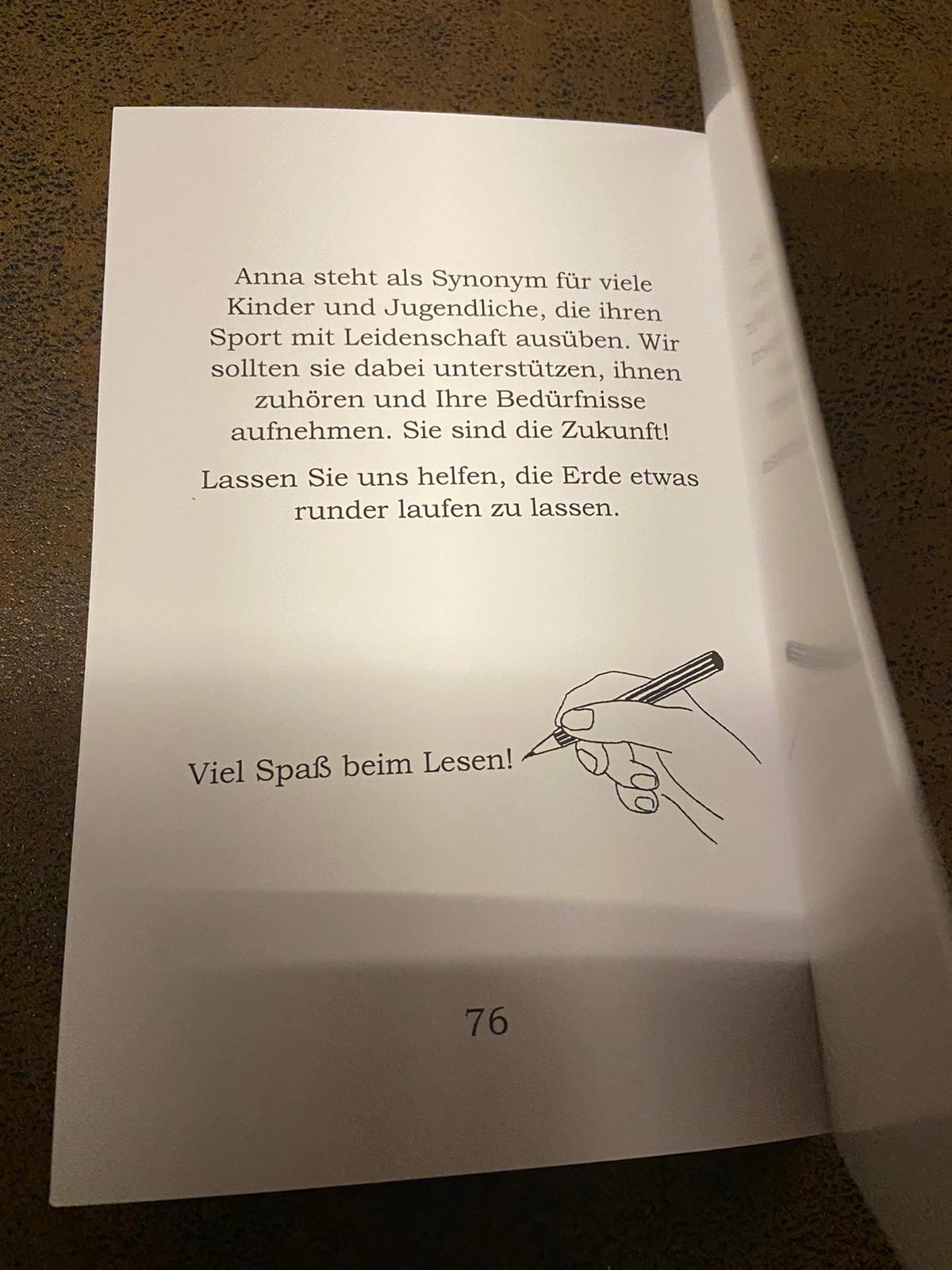 "Anna ist neugierig. Über Umwege mit einigen Abenteuern, lernt sie verschiedene Menschen und ihren Sport kennen. Integration und Inklusion wird der 8 Jährigen dabei ebenso näher gebracht wie dem Leser das integrierte Daumenkino. 76 Seiten mit 43 Illustrationen." so Peter Franz über sein Buch für Kinder ab 7 Jahren.